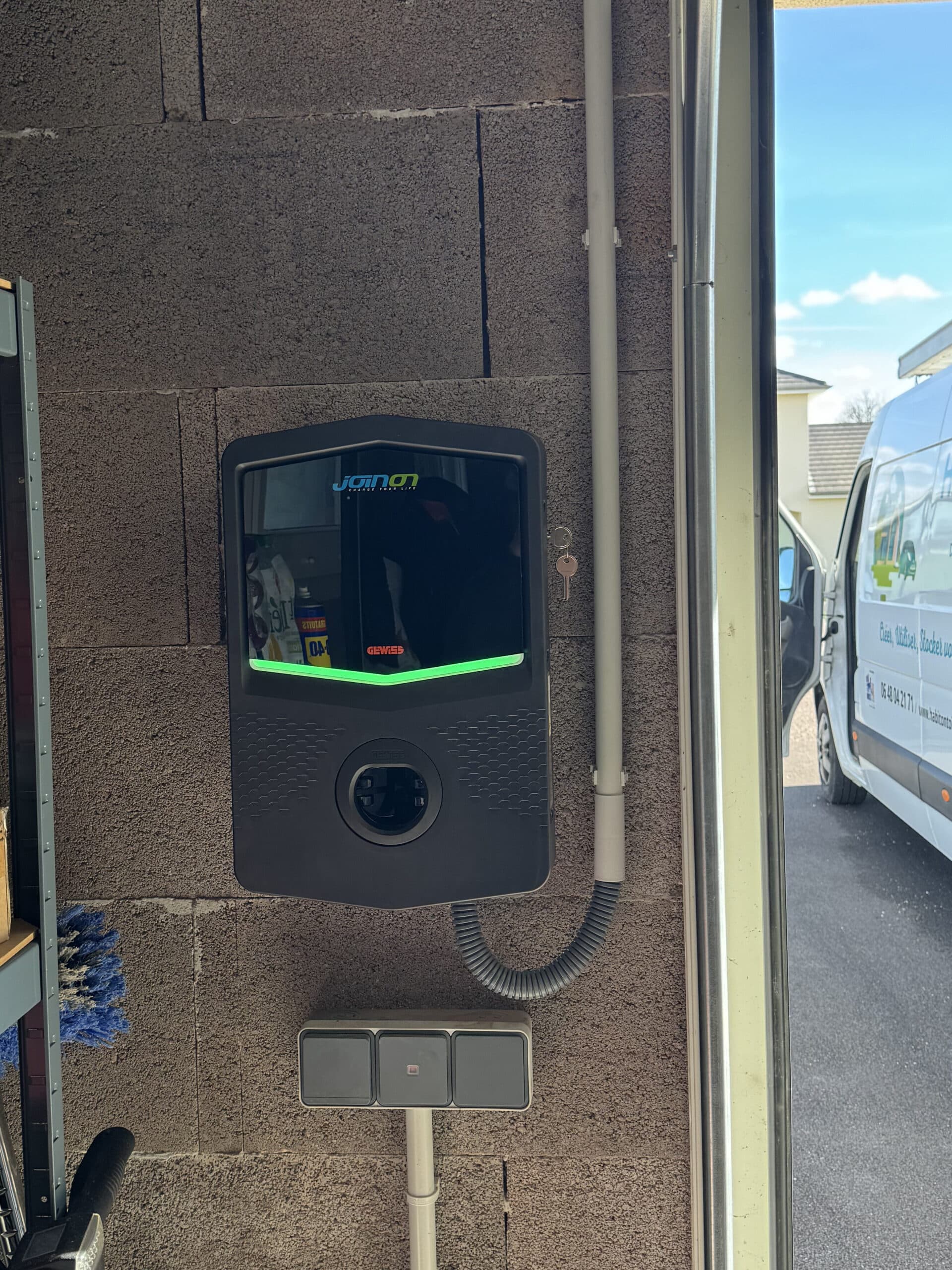 BORNE IRVE PARTICULIER Installation chez un particulier d’une Borne IRVE GEWISS (bridable) raccorder à son installation photovoltaïque réalisée par nos soins, la borne IRVE est directement installée dans le garage afin de recharger le véhicule au chaud !! Nous remercions ce client de nous avoir fait confiance.😁